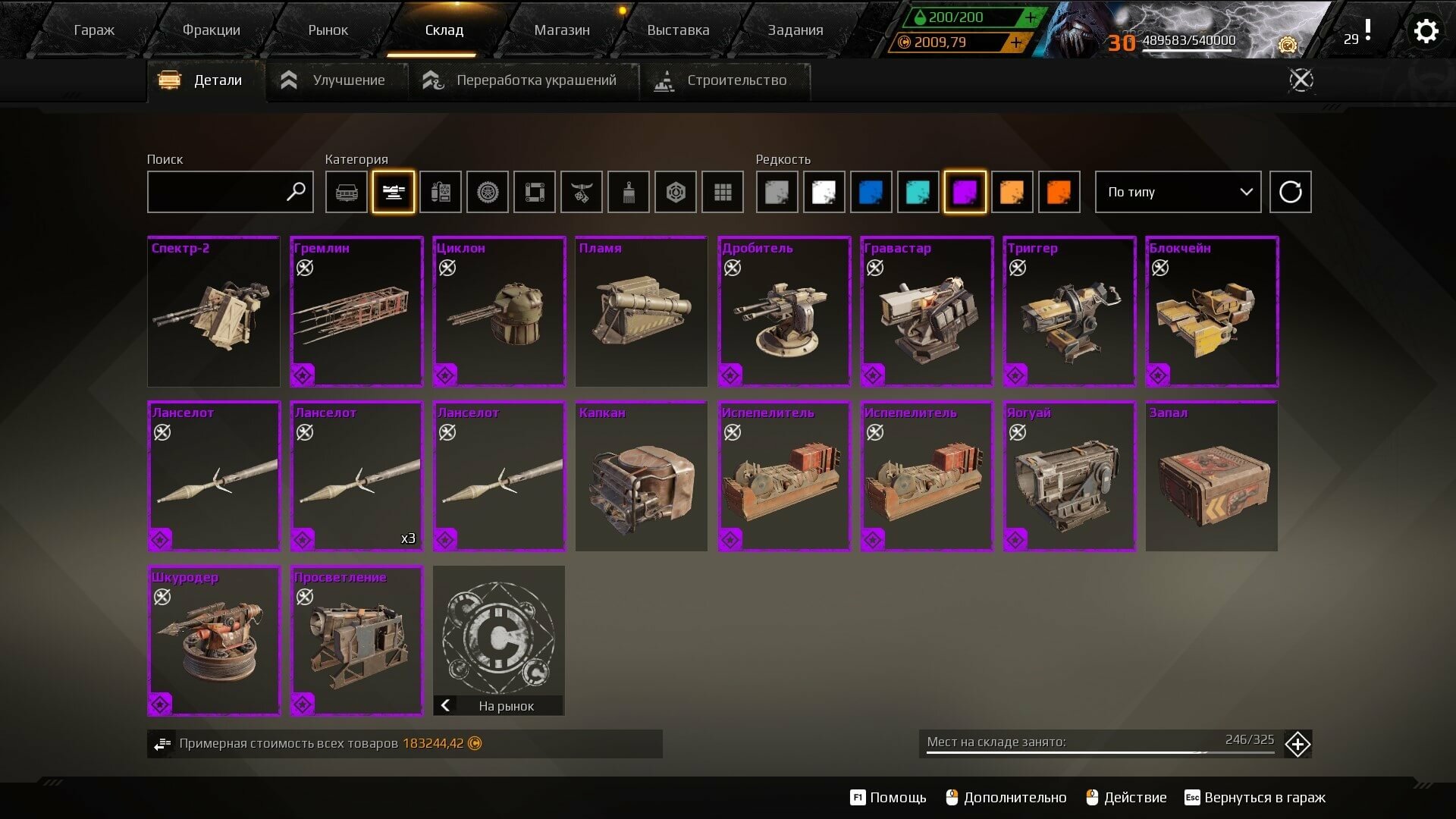 5) Расширенный склад и кол-во чертежей.